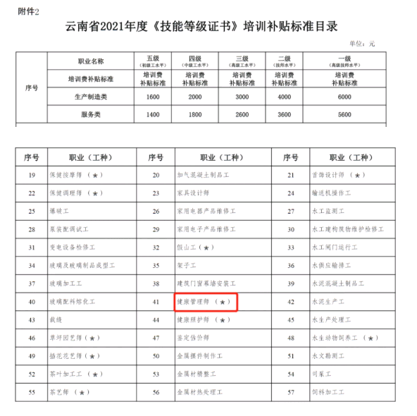 近日,云南省人力资源和社会保障厅、云南省财政厅印发《关于发布云南省2021年度职业技能培训创业培训补贴标准目录的通知》(云人社通〔2021〕22号)