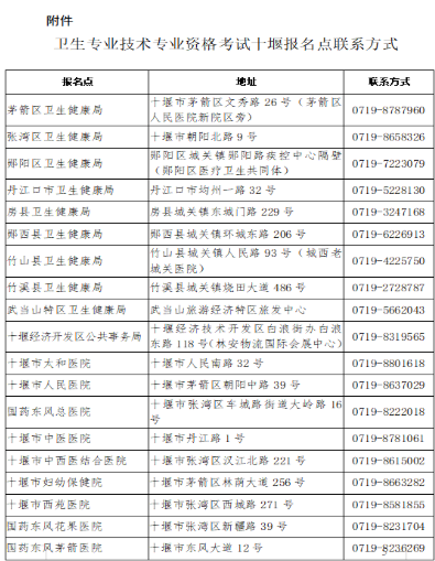 附件:卫生专业技术专业资格考试十堰各报名点联系方式