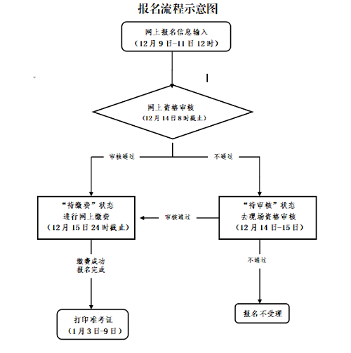 (2)12月14日8:00前,报考人员须登录报名网站查询审核状态,只有报名状态为“待缴费”的考生,表示网上资格审核通过,可按要求进行网上缴费确认;仍显示为“待审核”状态的则表明资格审核未通过。